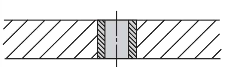 Liner bushings, type L, are permanent bushings that resemble press-fit bushings but are larger. Liner bushings are used with renewable-style bushings to provide a hardened, wear-resistant hole in an otherwise soft jig plate. The close sliding fit between the renewable bushing and the liner bushing permits the bushing to be changed repeatedly over long production runs with no loss of positional accuracy. The headless design of liner bushings allows them to be mounted close together and flush with the top of the jig plate. Still, like press-fit bushings, they offer less resistance to heavy axial loads.