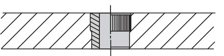 New-design one-piece lock liner has angular locking surfaces for superior strength. Allows very close hole spacing. Hold in place with a lock nut. Also available knurled for installing in plastic tooling.
