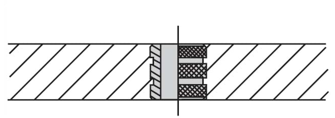 For cast-in-place applications, the bushings are mounted in holes that have a larger diameter. The space between the outer surface of the bushing and the inside of the hole is filled either with epoxy resin or a low-melting-point alloy.