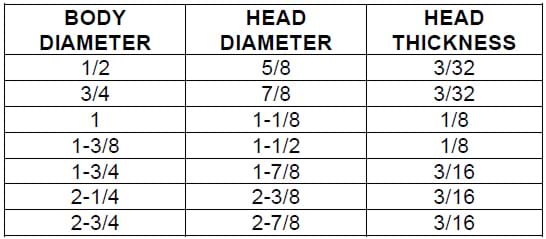 When the jig plate is counterbored, only the body diameter of the bushing provides the location, and only this diameter needs to be reamed. The counterbored area provides clearance for the head and should not be a precision fit. Figure 10-5 shows standard head diameters. The length of the bushing is measured from the underside of the head to the exit end of the bushing.