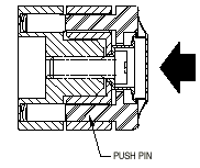 When the release button is pressed, against spring force, push pins force the locking pins to disengage. The hub is now free to rotate. After reaching the desired angle, releasing the button again allows the locking pins to extend back into locked position.