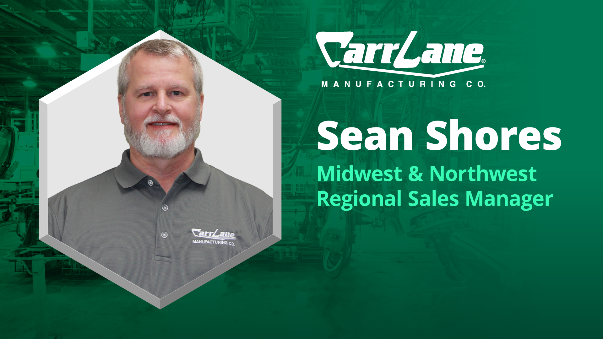 Sean Shores is the Regional Sales Manager for Carr Lane Manufacturing, covering a large portion of the central and western United States. Based in Minnesota, Sean's territory includes Washington, Oregon, Idaho, Utah, Montana, Wyoming, Colorado, North Dakota, South Dakota, Nebraska, Minnesota, Iowa, Kansas, Illinois, Missouri, and Wisconsin.