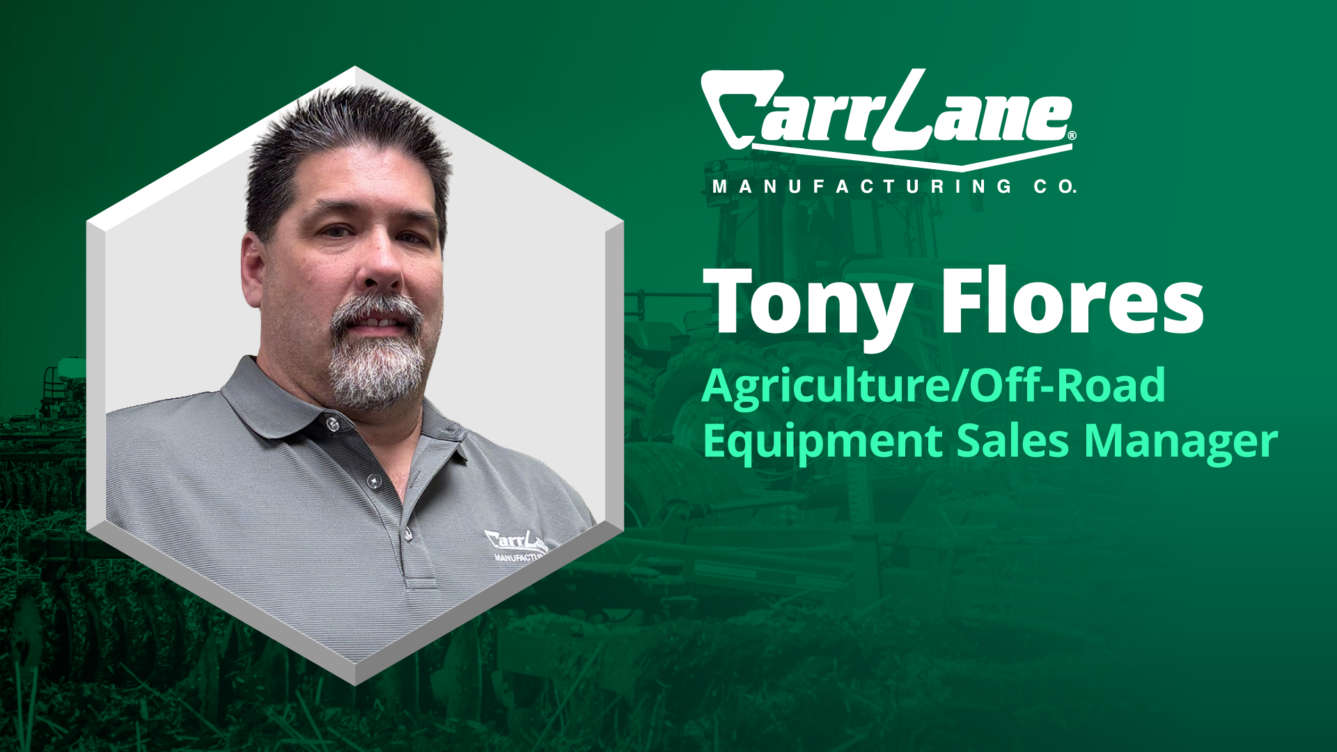 In his role Tony focuses on providing high-quality agricultural tooling components to equipment manufacturers.Carr Lane's innovative solutions provide exceptional hold-down force and repeatability, ensuring reliability and efficiency in agricultural equipment manufacturing.