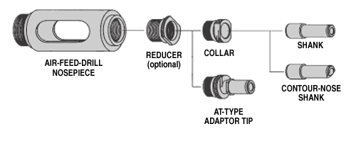 New-design lock screw especially for air-feed drills. Angular locking surface for superior strength.