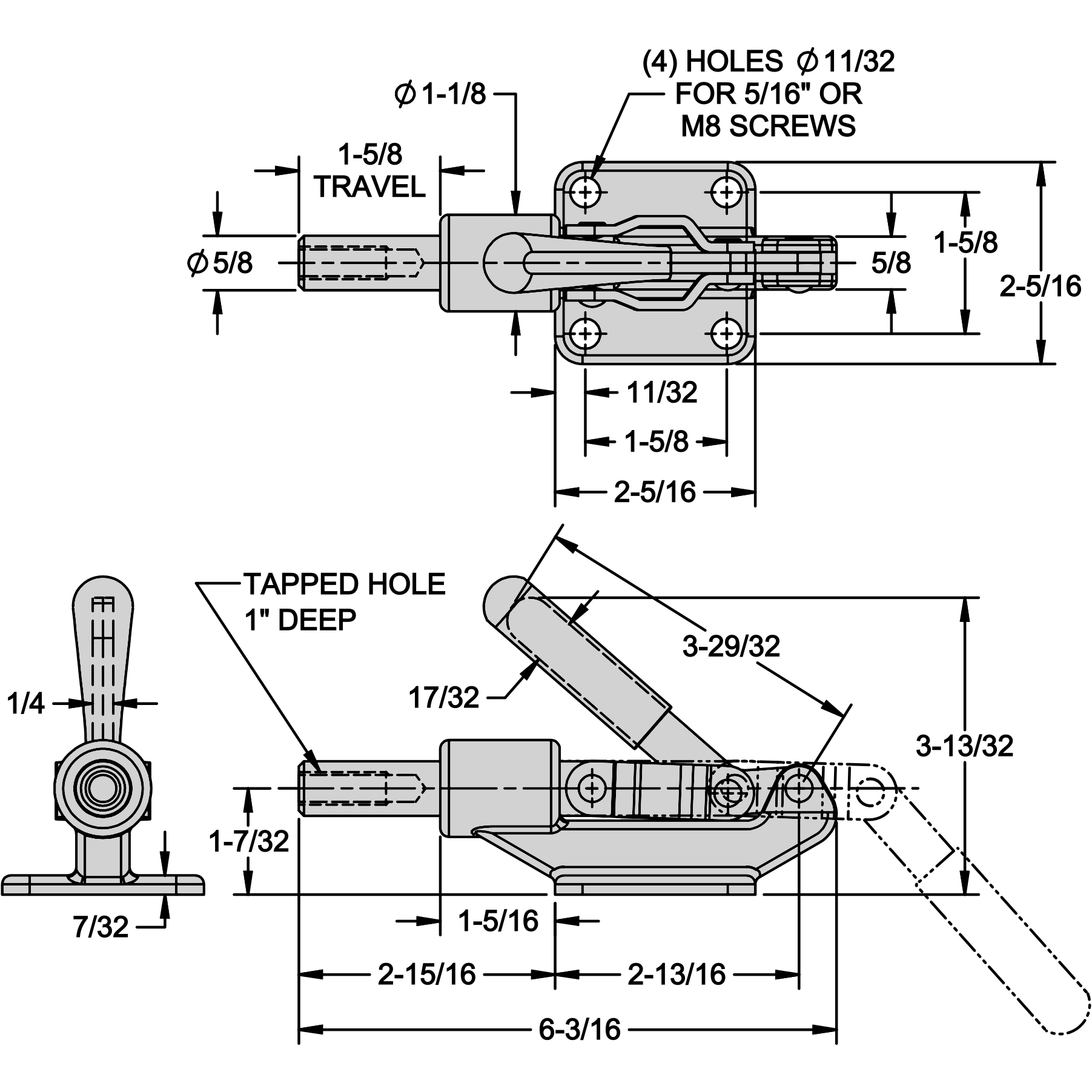 CL-200-PC Tapped Plunger, Flanged Base 3/8-16 850 1.4